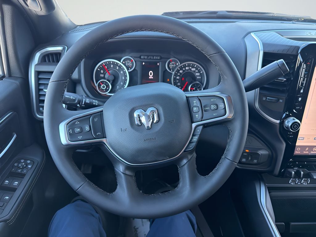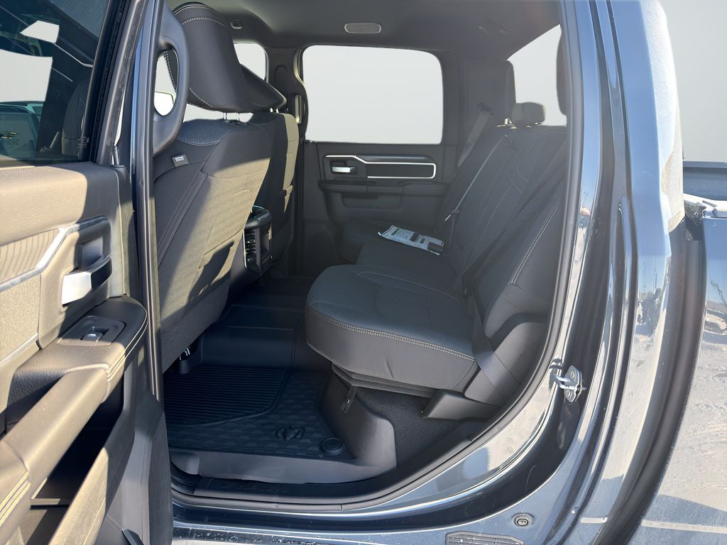 Quick Order Package 2UZ Big Horn. Night Edition: Firestone Brand Tires; Gloss Black Nostrils/molded in Color Black Grille; LT285/60R20E OWL On/off Road Tires; Black Exterior Truck Badging; 20" X 8.0" Black Painted Aluminum Wheels; Body Color Grille Surround; Black Interior Accents; Black Wheel Center Hub; Painted Front Bumper; Painted Rear Bumper. Big Horn Level 1 Plus Equipment Group: Google Android Auto; SiriusXM Radio Service; For Details Visit DriveUconnect.com; For More Info. Call 800-643-2112; Integrated Voice Command with Bluetooth®; Emergency Vehicle Alert System (EVAS); 12" Touchscreen Display; Glove Box Lamp; Auto Power-Folding Mirrors; Footwell Courtesy Lamp; Mirror Running Lights; MOPAR Deployable Bed Step; Alexa Built-In; Apple CarPlay; Power-Adjustable Convex Aux Mirrors; Forward and Reverse Utility Lights; Locking Lower Glove Box; Remote Start System; 9 Alpine Speakers with Subwoofer; Disassociated Touchscreen Display; Dual Glove Boxes; 2nd Row in Floor Storage Bins; Rear View Auto Dim Mirror; Rear Dome with On/off Switch Lamp; LED Bed Lighting; Connectivity - US/Canada; GPS Navigation; 4G LTE Wi-Fi Hot Spot; GPS Antenna Input; Exterior Mirrors with Heating Element; SiriusXM with 360L; Global Telematics Box Module; Connected Travel and Traffic Services; Foam Bottle Insert (door Trim Panel); Black Exterior Mirrors; Big Horn Instrument Panel Badge; Off-Road Information Pages; Selectable Tire Fill Alert; Trailer Tow Pages; HD Radio; Uconnect 5 Navigation with 12.0" Display Radio; Power Heated Fold Telescopic Mirrors; Exterior Mirrors with Supplemental Signals; Steering Wheel Mounted Audio Controls; Exterior Mirrors Courtesy Lamps; Air Conditioning ATC with Dual Zone Control; MOPAR Spray in Bedliner; Power Adjust Mirrors; Luxury Steering Wheel; Power Telescoping Mirrors. Heated Seats and Wheel Group: Heated Front Seats; Heated Steering Wheel. Painted Flat Wheel-To-wheel Side Steps. 5th Wheel/gooseneck Towing Prep Group. Premium Cloth Bucket Seats. Remote Start System. Forged Blue Metallic. MOPAR Front and Rear Rubber Floor Mats. MyFlexCare Service Plan. Rear Wheelhouse Liners. Transfer Case Skid Plate Shield. **Equipment listed is based on original vehicle build and subject to change. Please confirm the accuracy of the included equipment by calling the dealer prior to purchase.**