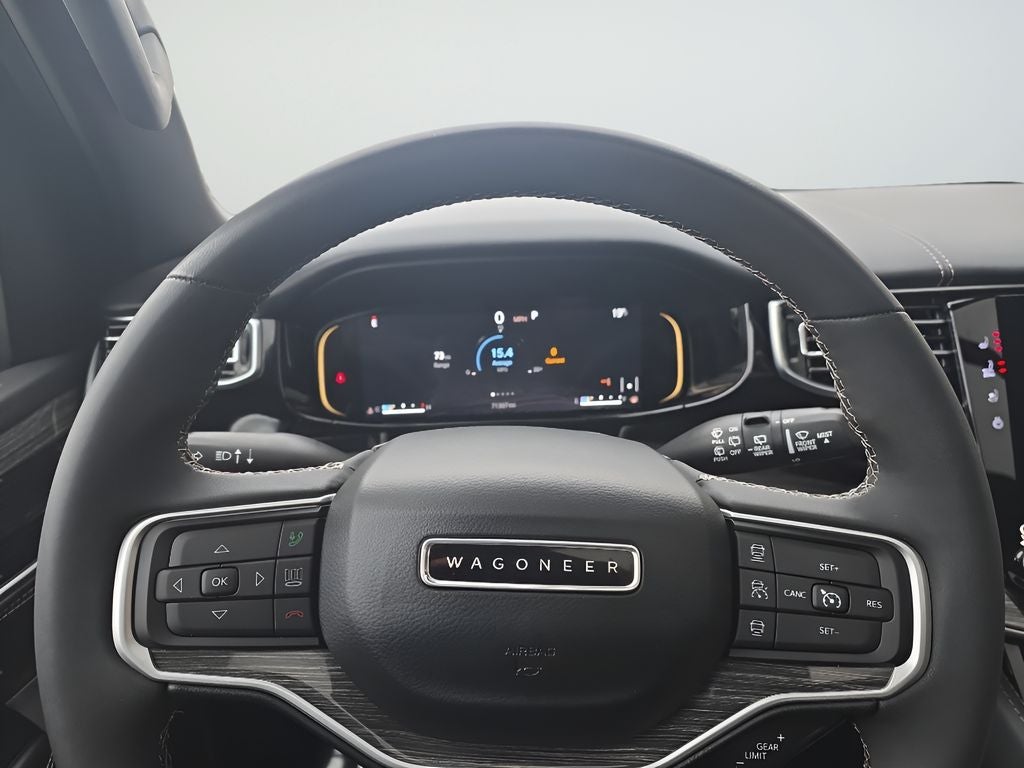 This vehicle offers Android Auto for seamless smartphone integration. It has auto-adjust speed for safe following. Bluetooth® technology is built into this vehicle, keeping your hands on the steering wheel and your focus on the road. The installed navigation system will keep you on the right path. This unit's Forward Collision Warning system alerts the driver to potential front-end collisions, enhancing safety. Start the Jeep Wagoneer from inside with remote start. See what's behind you with the back up camera on this 2022 Jeep Wagoneer . The leather seats in this 1/2 ton suv are a must for buyers looking for comfort, durability, and style. Apple CarPlay: Seamless smartphone integration for this model - stay connected and entertained on the go! This 2022 Jeep Wagoneer is pure luxury with a heated steering wheel. This Jeep Wagoneer has a V8, 5.7L high output engine. It has an elegant black exterior finish.