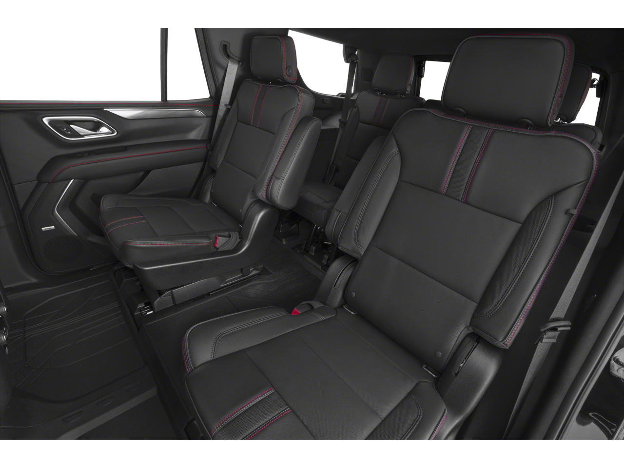 - 500 Lbs) GVWR; LED Daytime Running Lamps; Electronic 10-Speed Automatic Transmission with Overdrive; Driver and Front Outboard Passenger Airbags; Memory Settings For Driver; Premium Smooth Ride Suspension; Wireless Charging; Front High-Back Reclining Bucket Seats; Universal Home Remote; Colour-Keyed Carpeting Floor Covering; Hands-Free Rear Power Programmable Liftgate; Chevrolet Infotainment 3 Premium System Radio; Bose 9-Speaker Stereo Audio System Feature; 1st and 2nd Row Colour-Keyed Carpeted Floor Mats; Enhanced Driver Information Centre; SiriusXM Radio with 360L; Wrapped Steering Wheel; 22" X 9" Bright Machined Wheels; Infotainment Display; Auto-Dimming Inside Rearview Mirror; 275/50R22SL AS BW Tires
