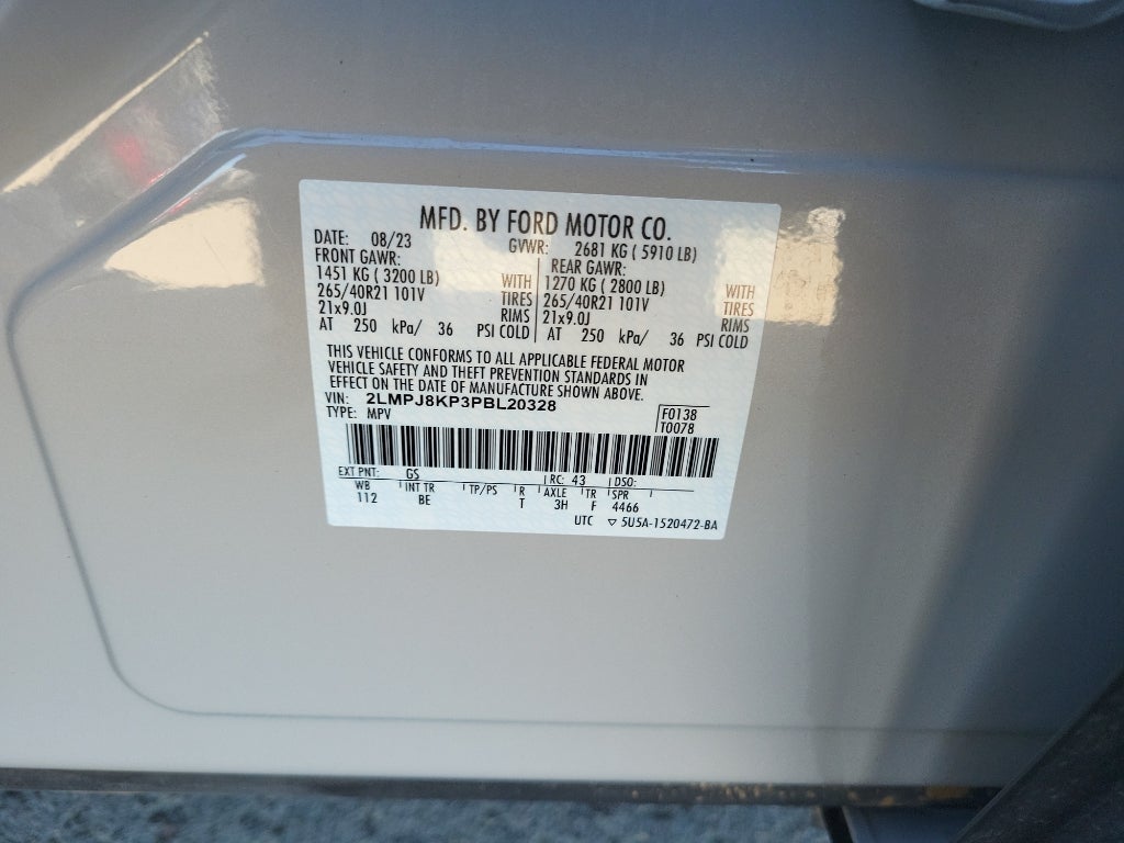 Equipment Group 202A: Premium Leather-Trimmed Heated/ventilated Comfort Seats; Phone as a Key; TBD GVWR. Ultimate Package: AM/FM/HD with Revel Ultima Audio System; 21" Premium Painted Bright Machined Aluminum; Full LED Multi-Projector Headlamps; LED Fog Lamps. Cargo Utility Package: 110V/150W AC Power Outlet; Interior Cargo Cover; Rear Cargo Management System; Molded Plastic Storage Bins; Cargo Compartment with Reversible Mat. Lincoln Co-Pilot360 1.0 Plus Package: Active Park Assist 2.0; Distance Indication and Alert; 360 Degree Camera; Adaptive Cruise Control; Evasive Steering Assist; Forward-Side-rear Parking Sensors. 21" Premium Painted Bright Machined Aluminum. Ultra Comfort Seats (22-Way) with Active Motion. Ceramic Pearl Met TC. Class II Trailer Tow Package. 18" Mini Spare Wheel with Spare Tire. **Equipment listed is based on original vehicle build and subject to change. Please confirm the accuracy of the included equipment by calling the dealer prior to purchase.**